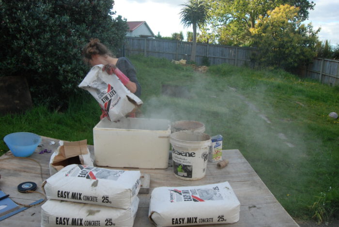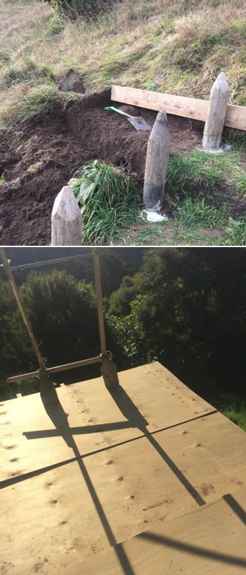^^ Panning for Gold, 2017. Traditional gold pan, coins, macrocarpa, A4 copy paper