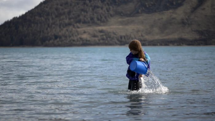 ^^^ Prospecting, 2018. Documentation image – Panning in river