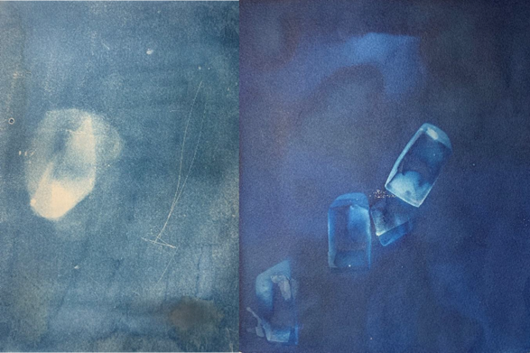 ^ Ice cube cyanotype, 2018. 135x200mm, Cyanotype on Hahnemuhle HP 300gsm, 2018